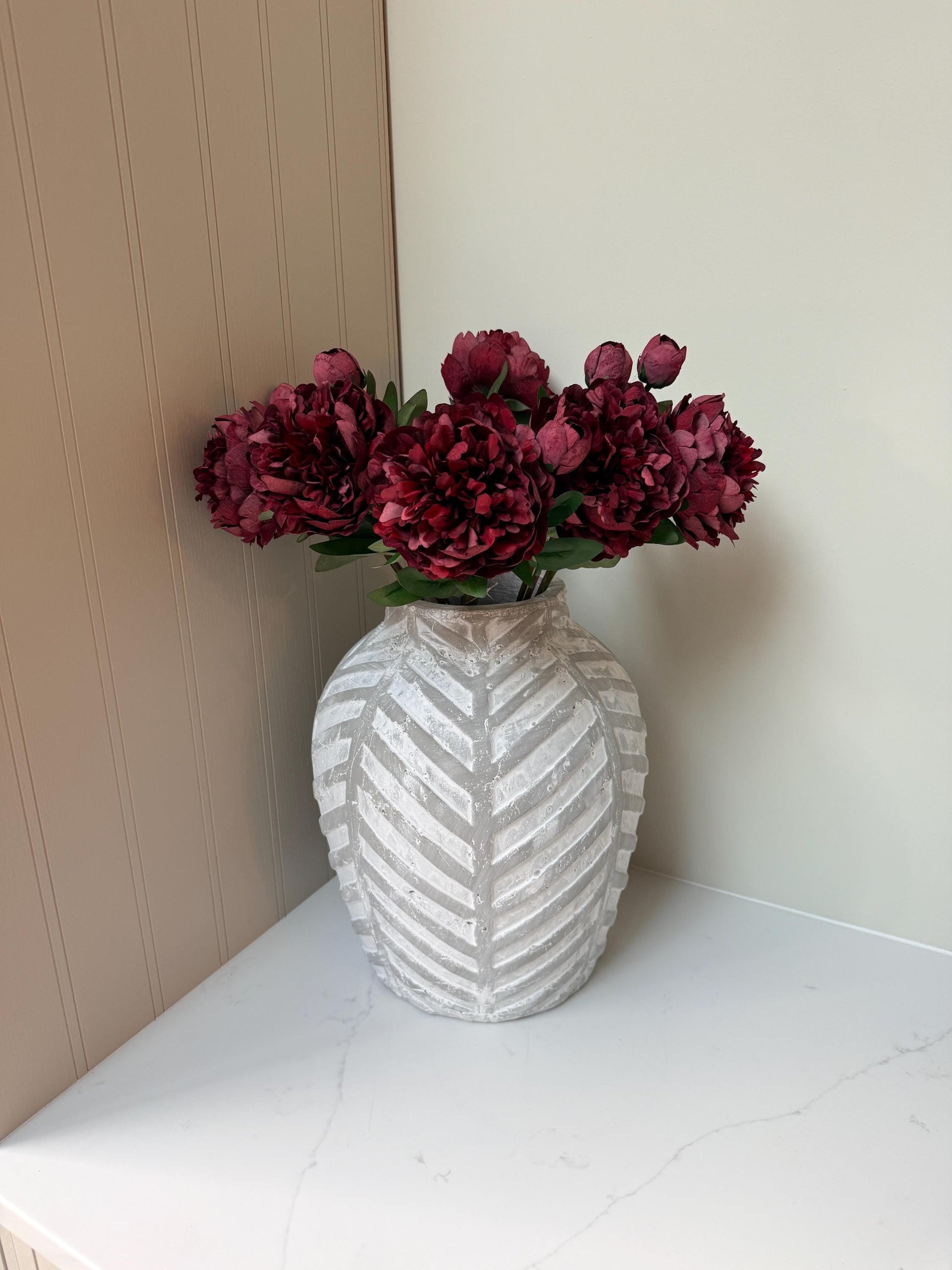 This is the Bloomville Stone Vase. A wonderfully earthy and neutral piece with an eye-catching geometric pattern that will hold broad appeal. Timeless, yet incredibly on-trend in the way that it highlights the beauty of a naturally occuring texture - stone.