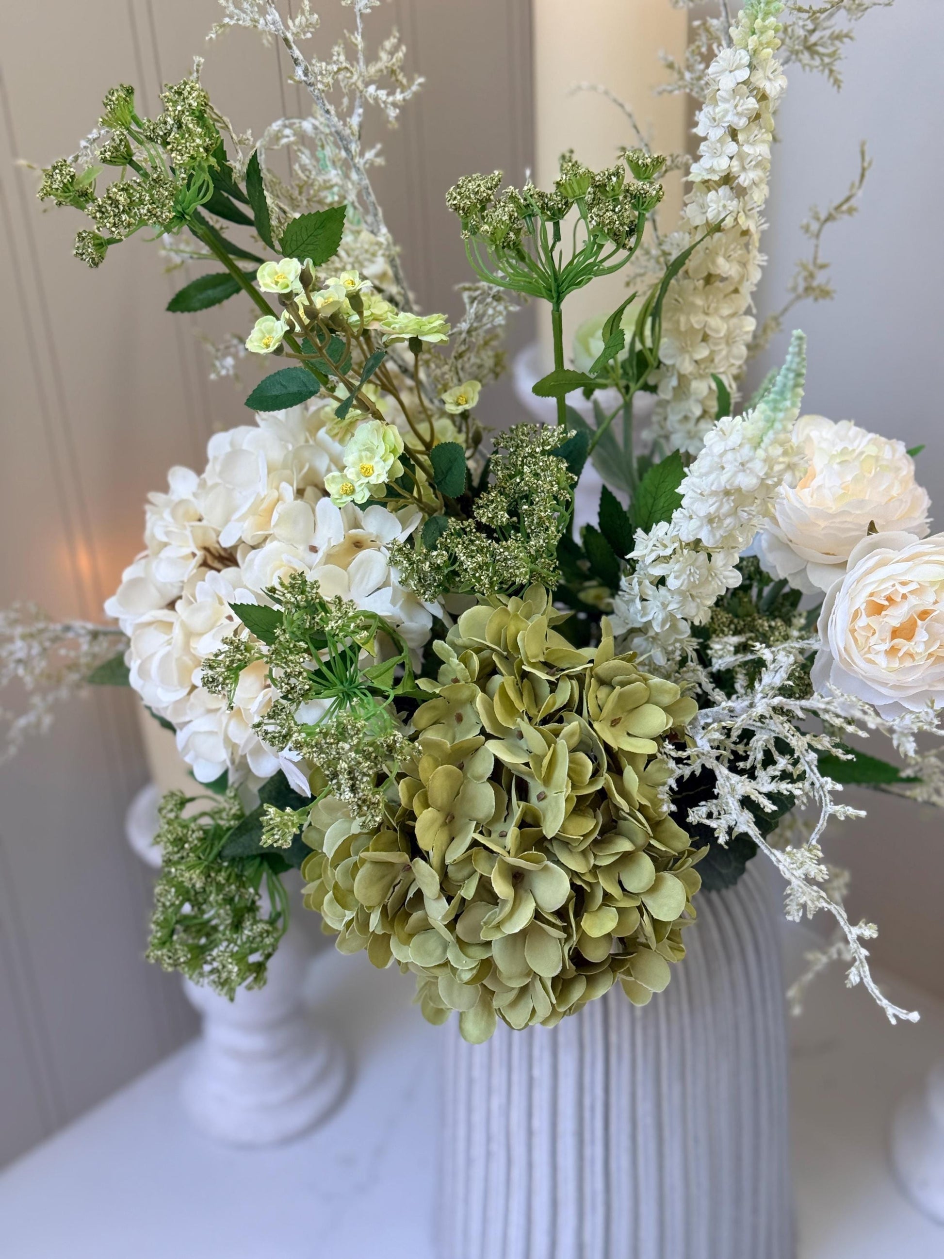 Daphne Faux Flower Arrangement | Luxury White & Green Hydrangea Display