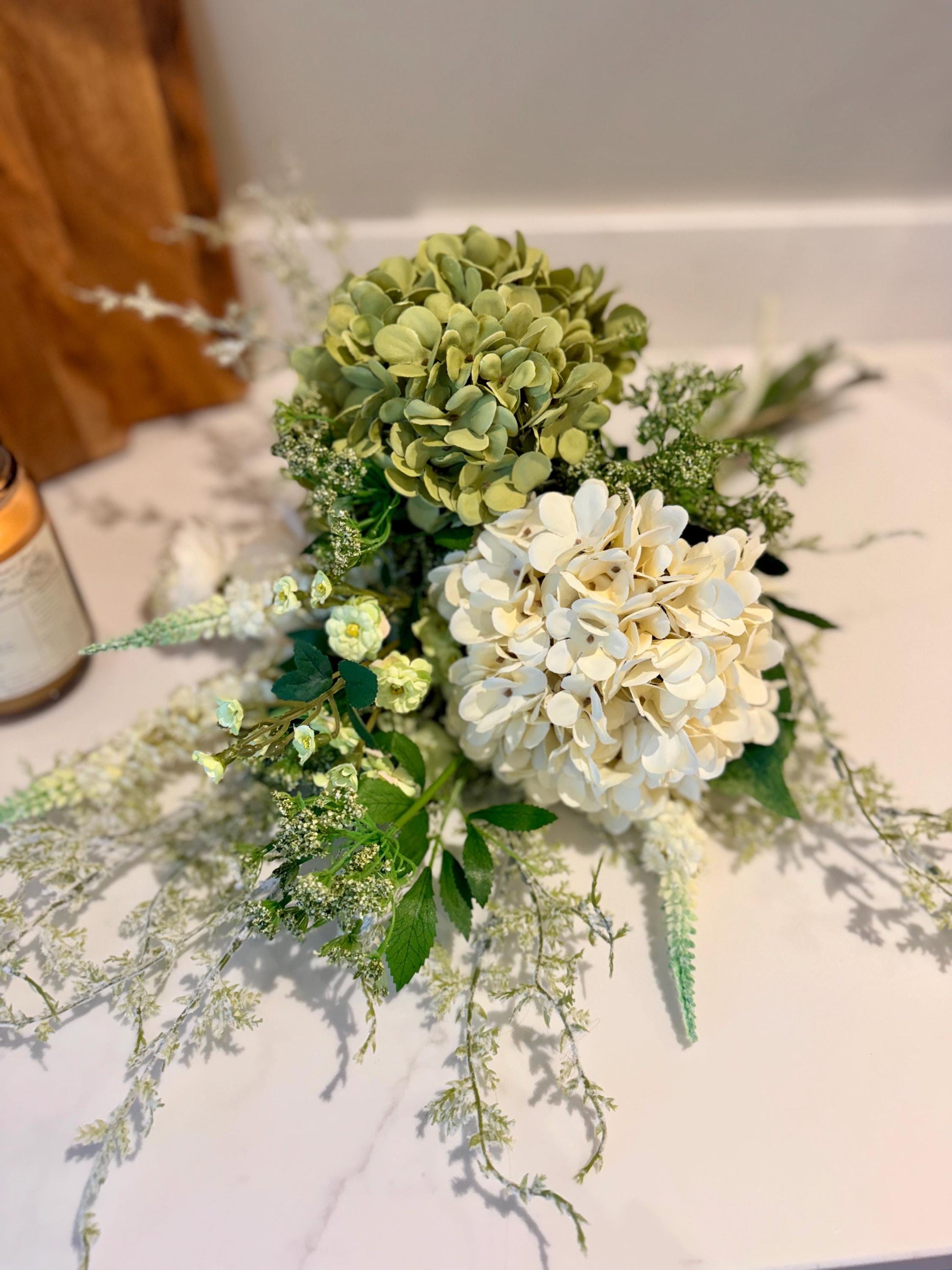 Daphne Handmade Faux Flower Arrangement | Luxury White & Green Hydrangea Bouquet
