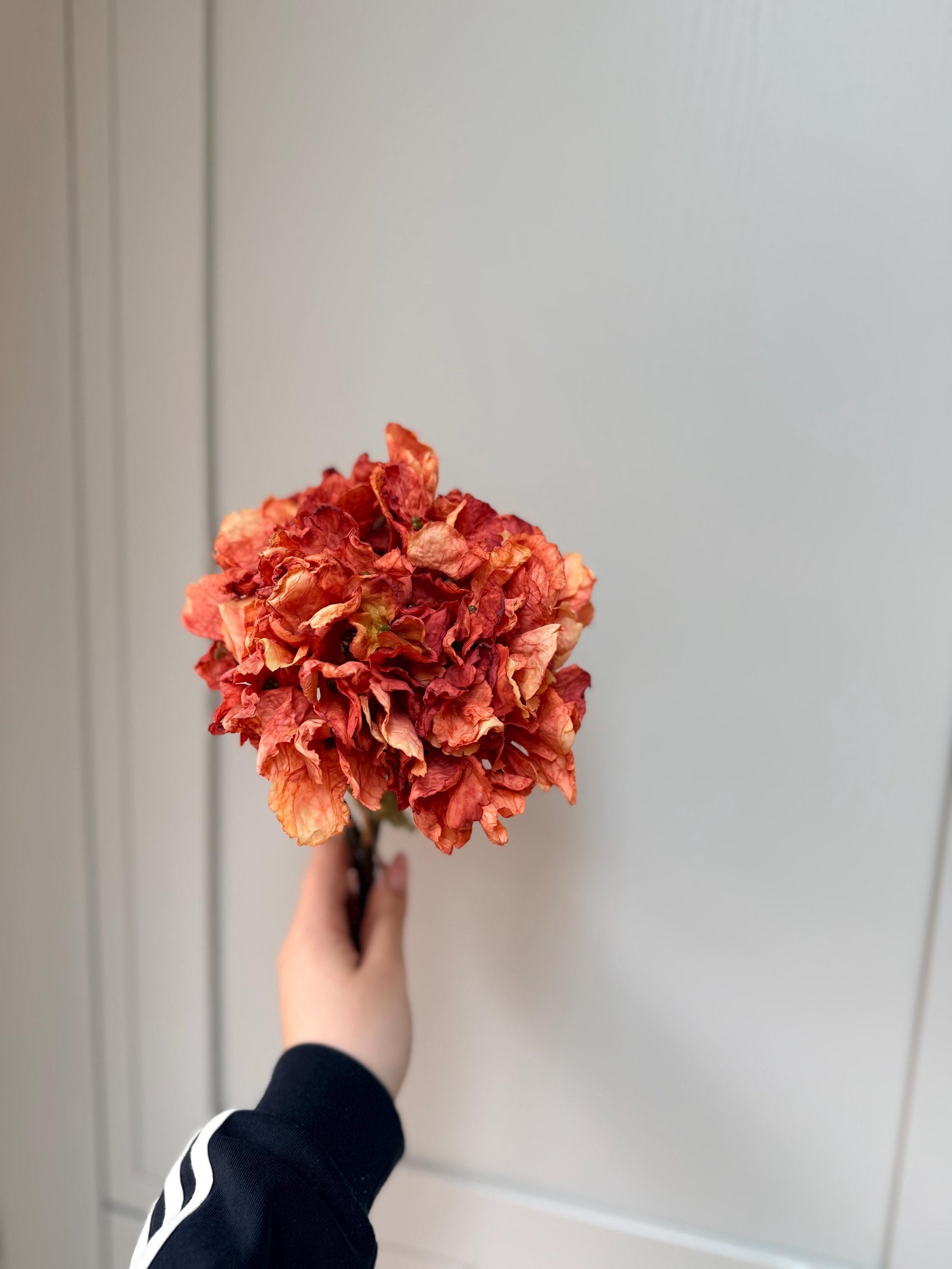 Dried Orange Artificial Hydrangea Stems | Silk Faux Flowers