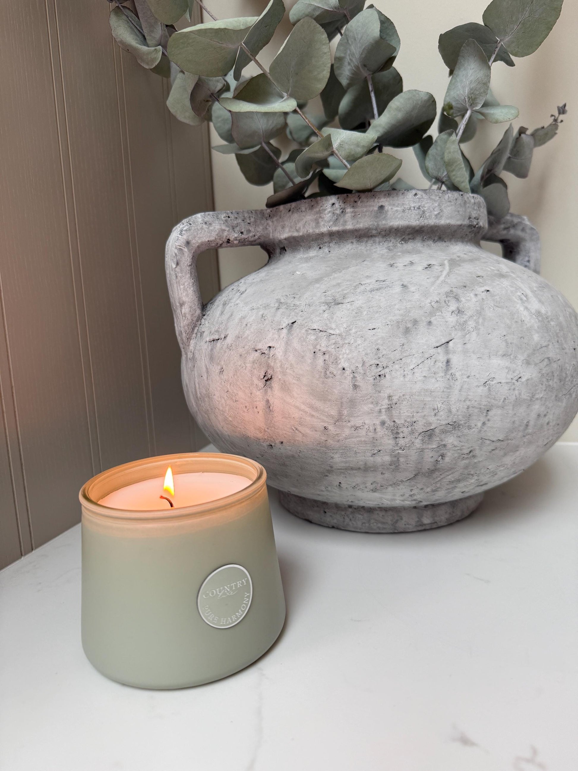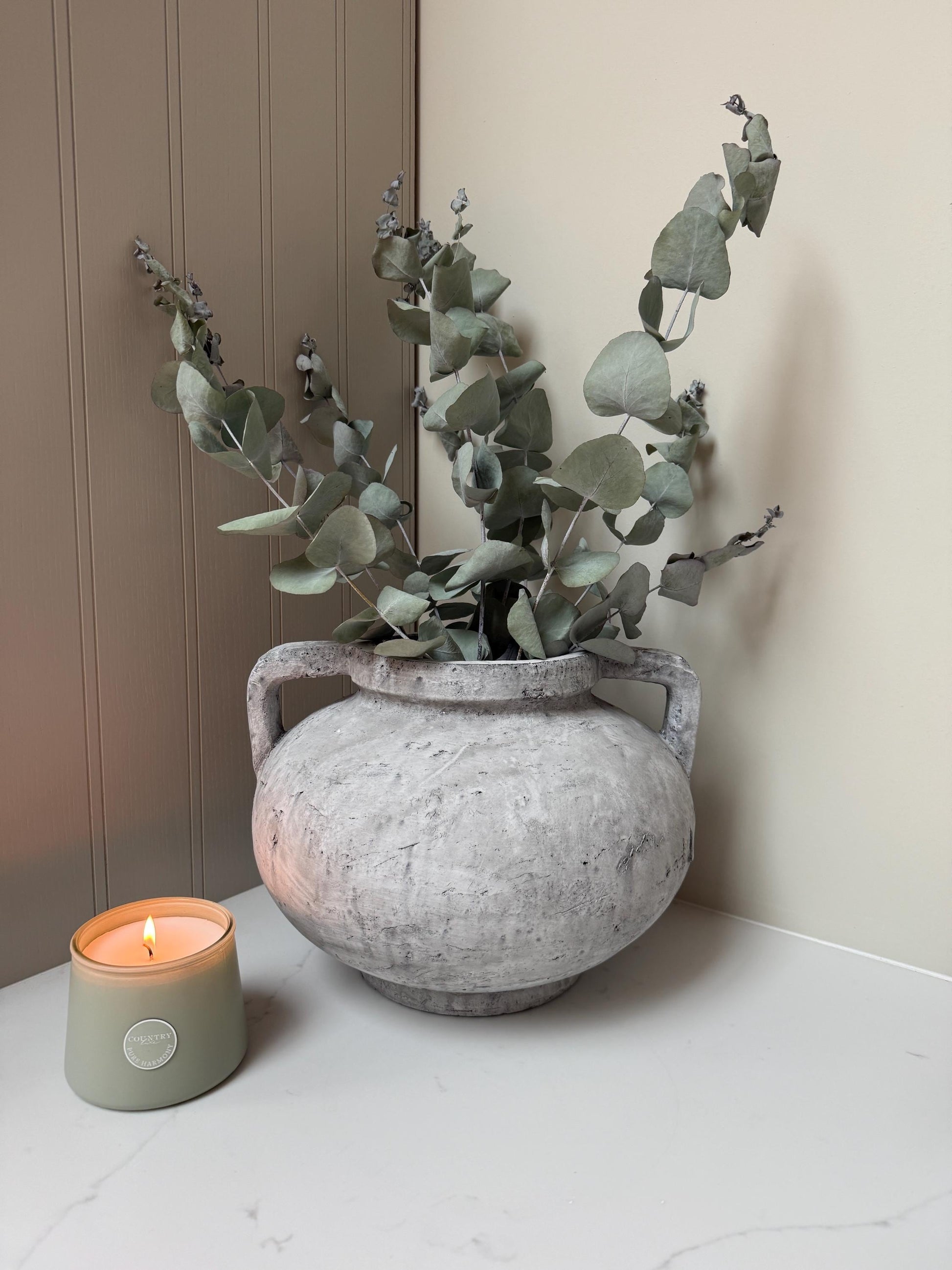 This beautiful rustic-style vase with twin handles has a distressed stone-effect finish, making it a perfect statement piece for your home.